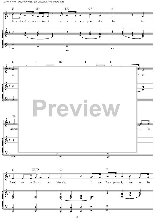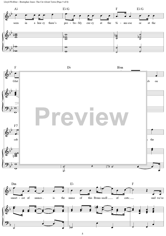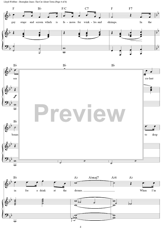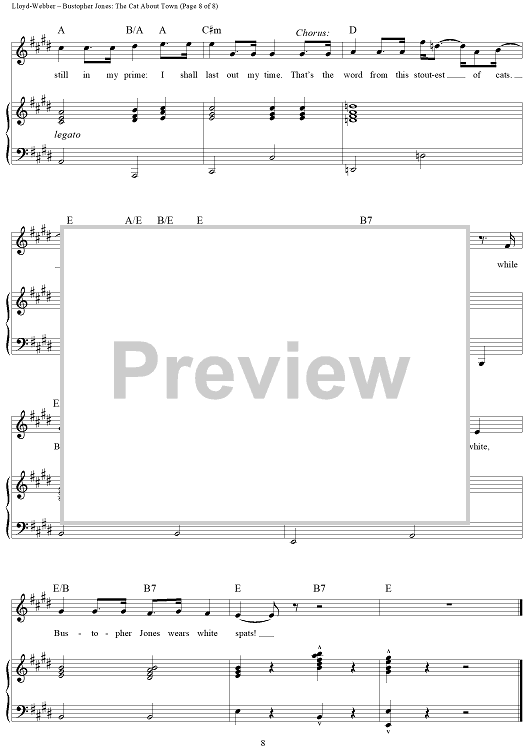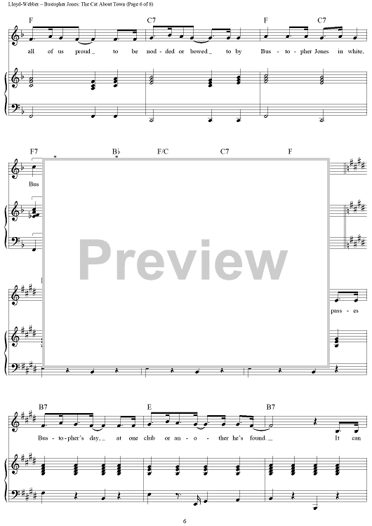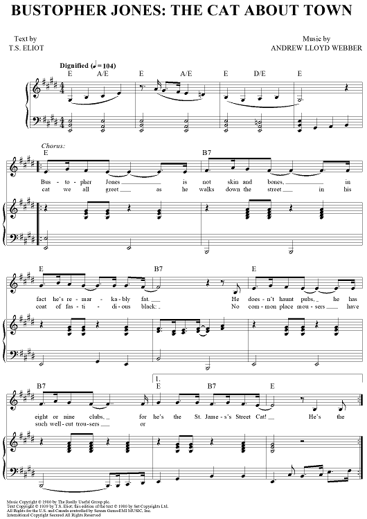 Digital Sheet Music for Bustopher Jones: The Cat About Town by Andrew Lloyd Webber, T.S. Eliot scored for Piano/Vocal/Chords; id:453388