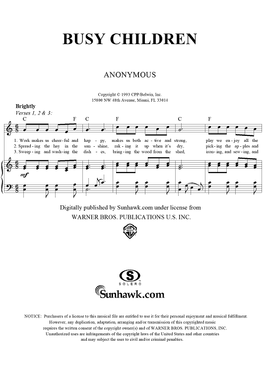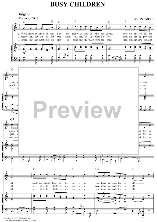 Digital Sheet Music for Busy Children by Unknown Writer scored for Piano/Vocal/Chords; id:277593
