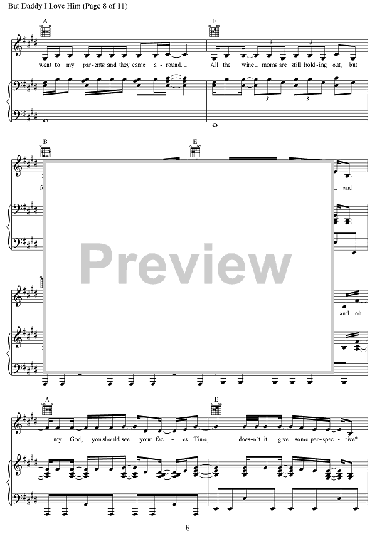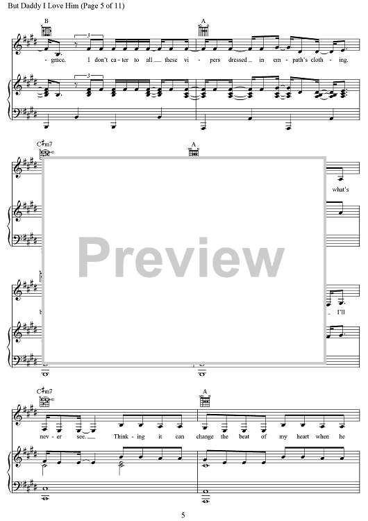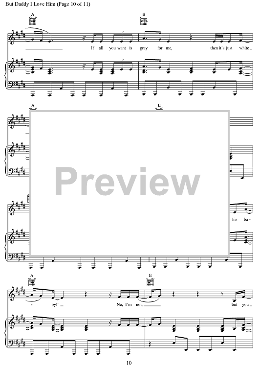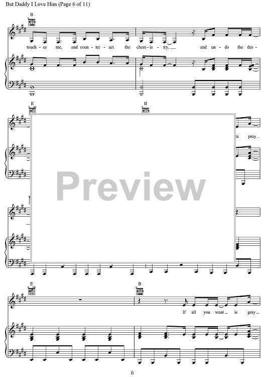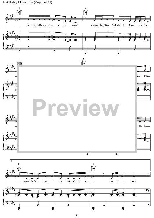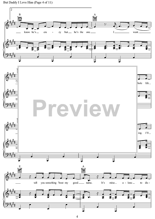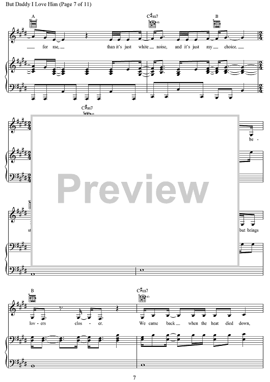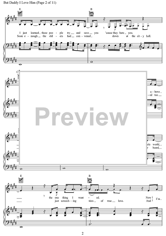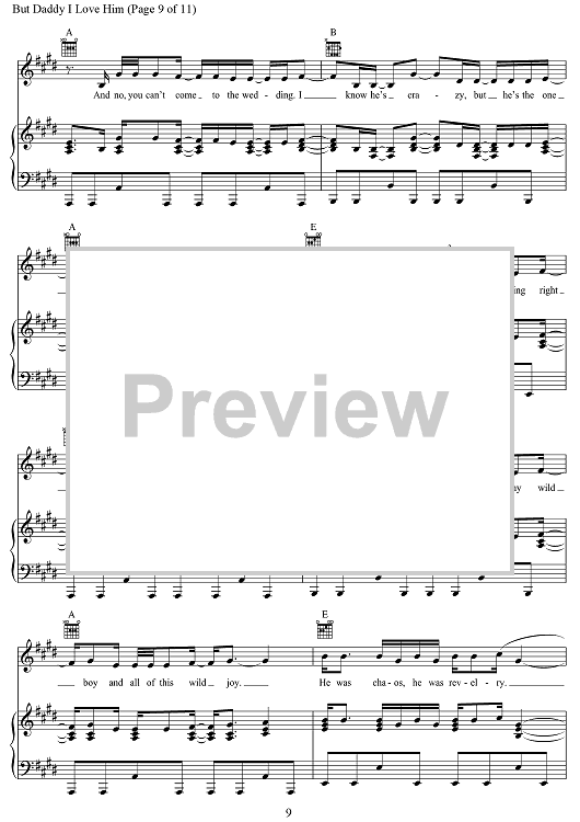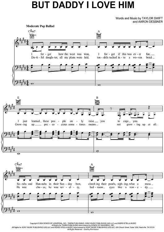 Digital Sheet Music for But Daddy I Love Him by Taylor Swift, Aaron Dessner scored for Piano/Vocal/Chords; id:501843