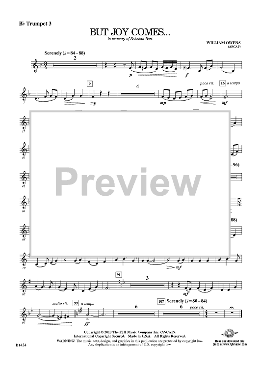 "But Joy Comes … - Bb Trumpet 3" Sheet Music by William Owens