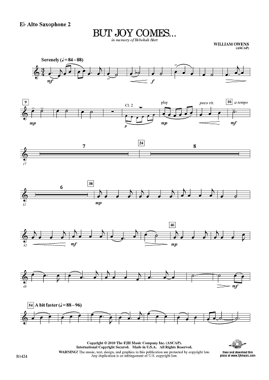 Digital Sheet Music for But Joy Comes … - Eb Alto Sax 2 by William Owens scored for Concert Band; id:415558