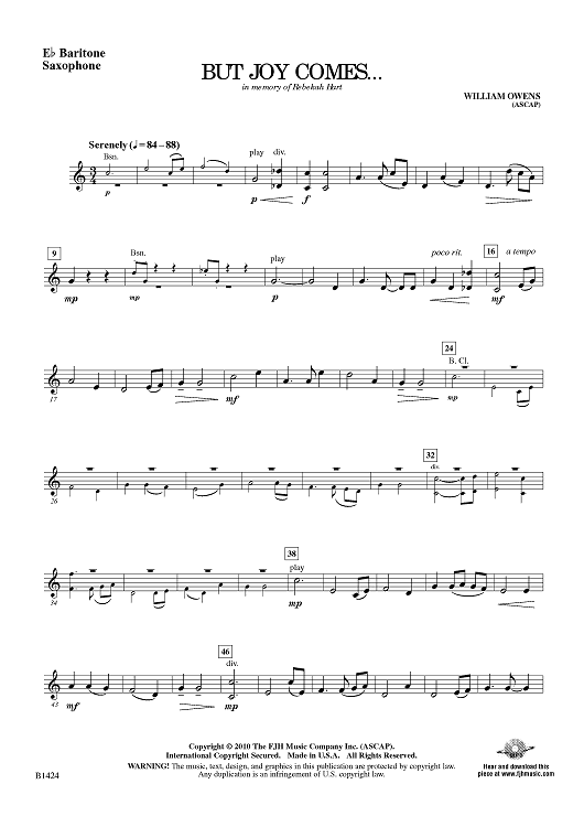 "But Joy Comes … - Eb Baritone Sax" Sheet Music by William Owens
