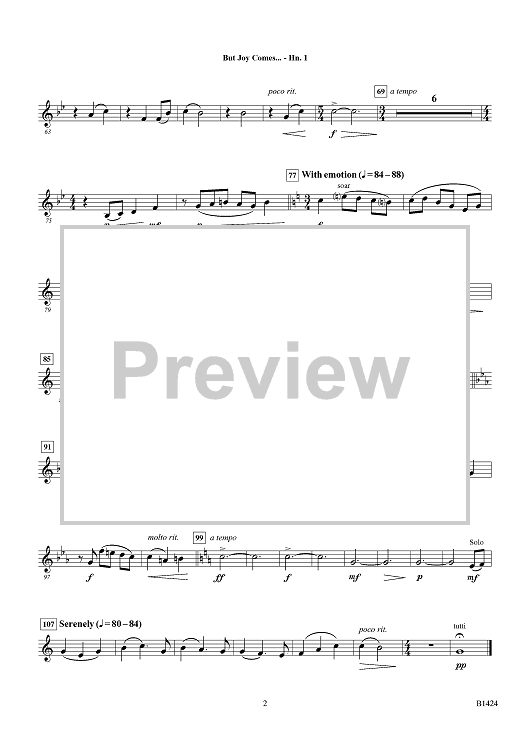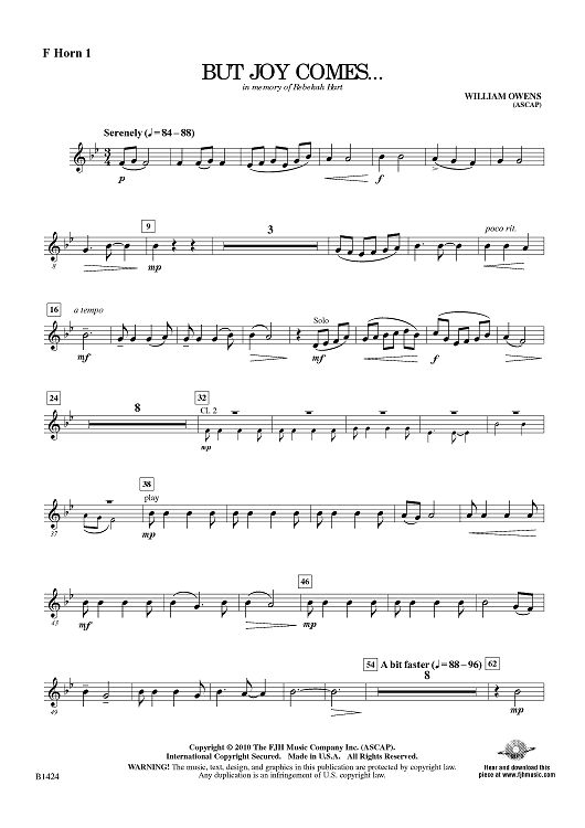 Digital Sheet Music for But Joy Comes … - F Horn 1 by William Owens scored for Concert Band; id:415564