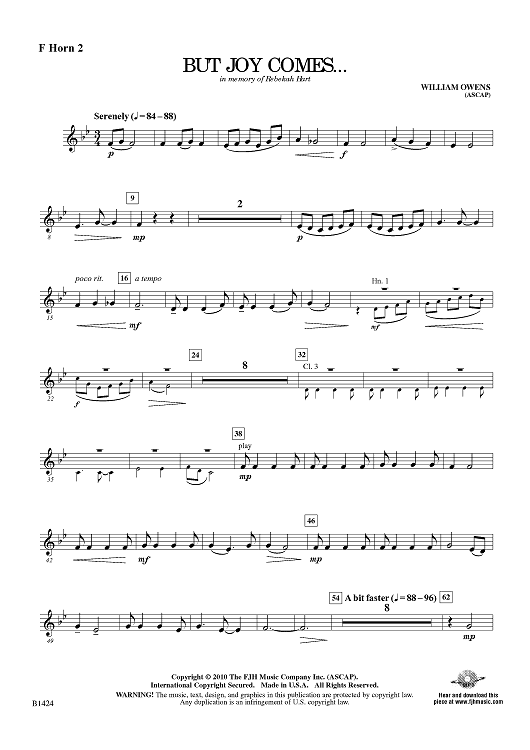 "But Joy Comes … - F Horn 2" Sheet Music by William Owens