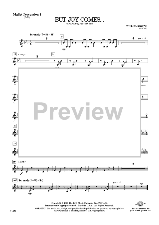 Digital Sheet Music for But Joy Comes … - Mallet Percussion 1 by William Owens scored for Concert Band; id:415572