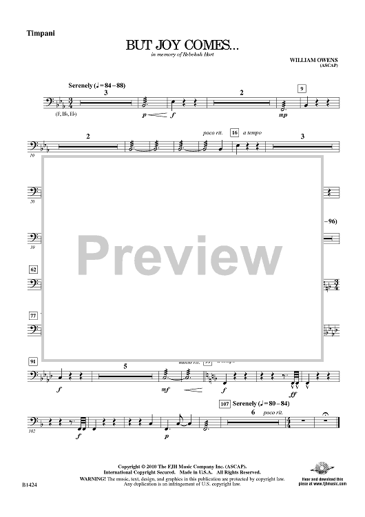 "But Joy Comes … - Timpani" Sheet Music by William Owens