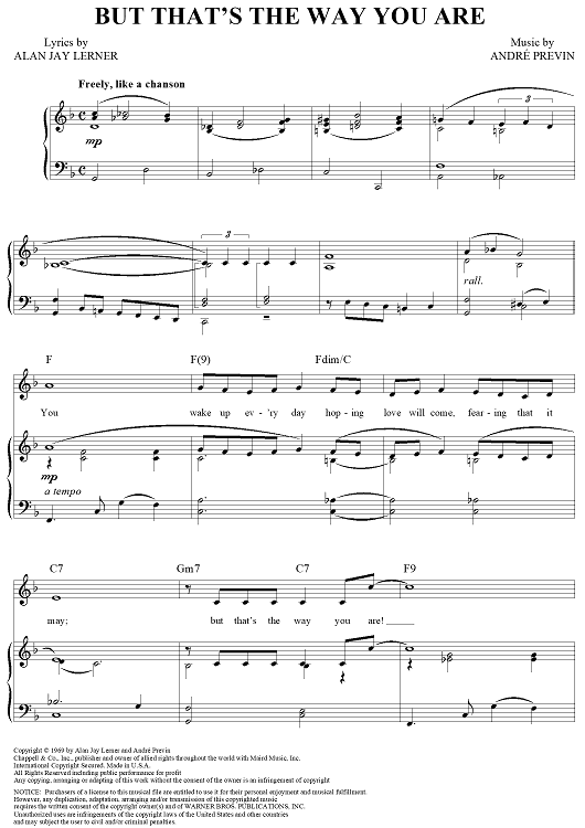 Digital Sheet Music for But That's the Way You Are by Alan Jay Lerner, Andre Previn scored for Piano/Vocal/Chords; id:355972