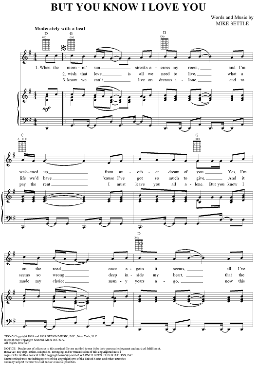 Digital Sheet Music for But You Know I Love You by Mike Settle, Dolly Parton scored for Piano/Vocal/Chords; id:257676