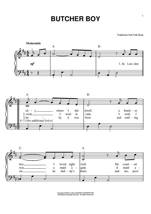 Digital Sheet Music for Butcher Boy by scored for Easy Piano; id:397280