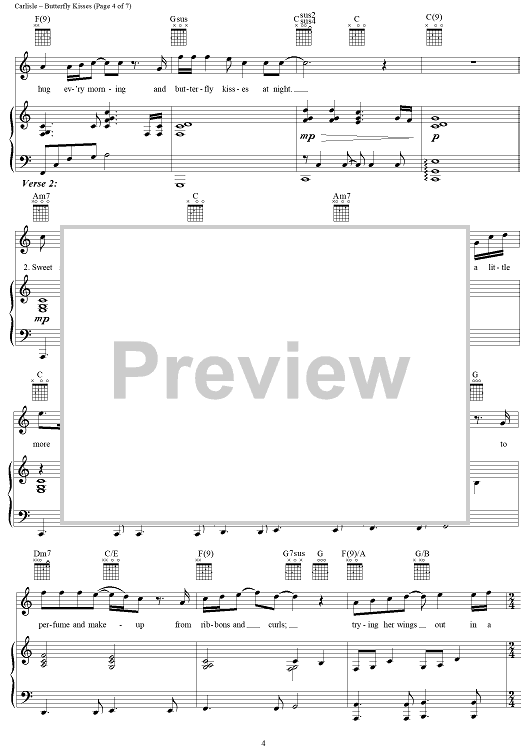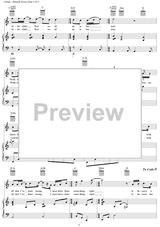 "Butterfly Kisses" Sheet Music by Bob Carlisle