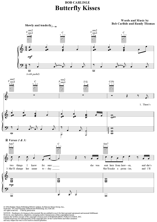 Digital Sheet Music for Butterfly Kisses by Randy Thomas, Bob Carlisle scored for Piano/Vocal/Chords; id:111606