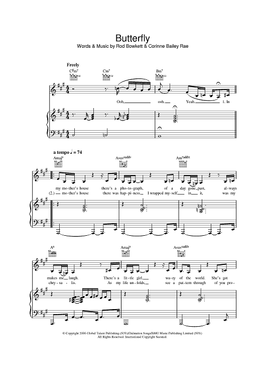 Digital Sheet Music for Butterfly by Corinne Bailey Rae, Rod Bowkett scored for Piano/Vocal/Chords; id:391172