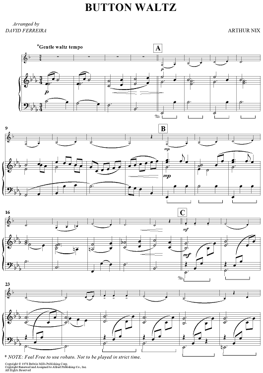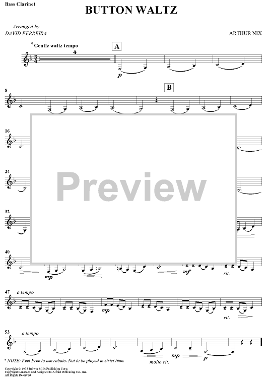 Digital Sheet Music for Button Waltz by Arthur Nix, David Ferreira scored for Bb Bass Clarinet/Piano; id:437408