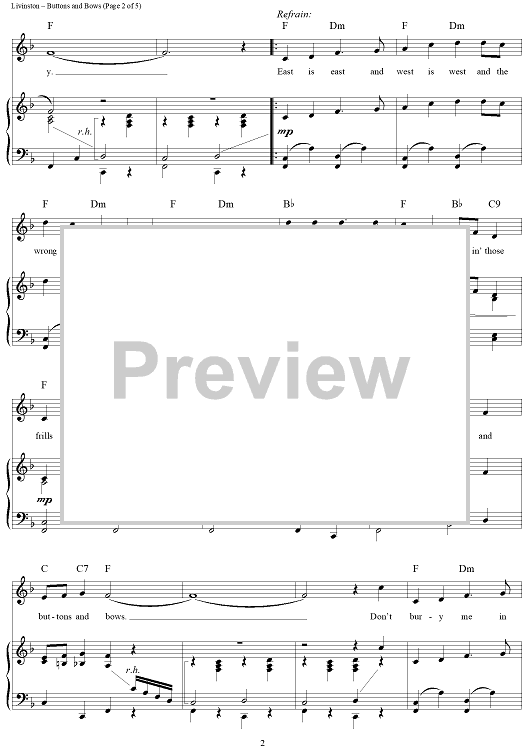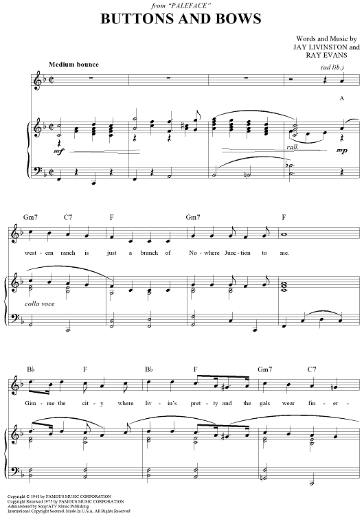 Digital Sheet Music for Buttons and Bows by Jay Livingston, Ray Evans, Dinah Shore, Bob Hope scored for Piano/Vocal/Chords; id:362601