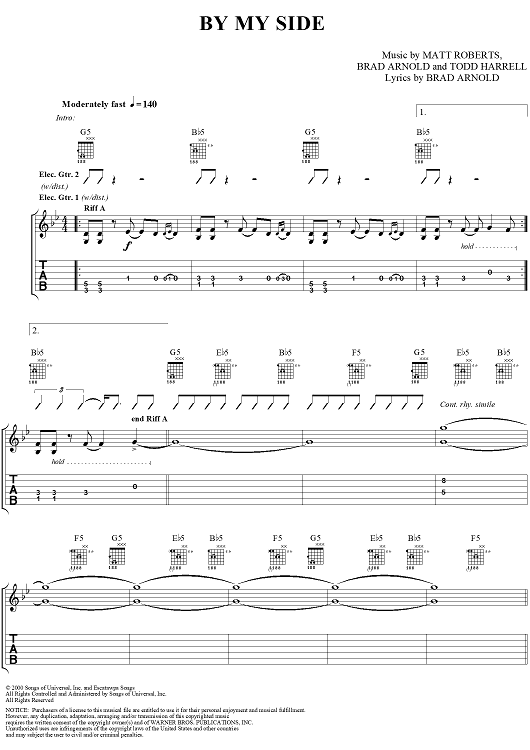 Digital Sheet Music for By My Side by 3 Doors Down, Matt Roberts, Brad Arnold, Todd Harrell scored for Guitar Tab/Vocal; id:283930