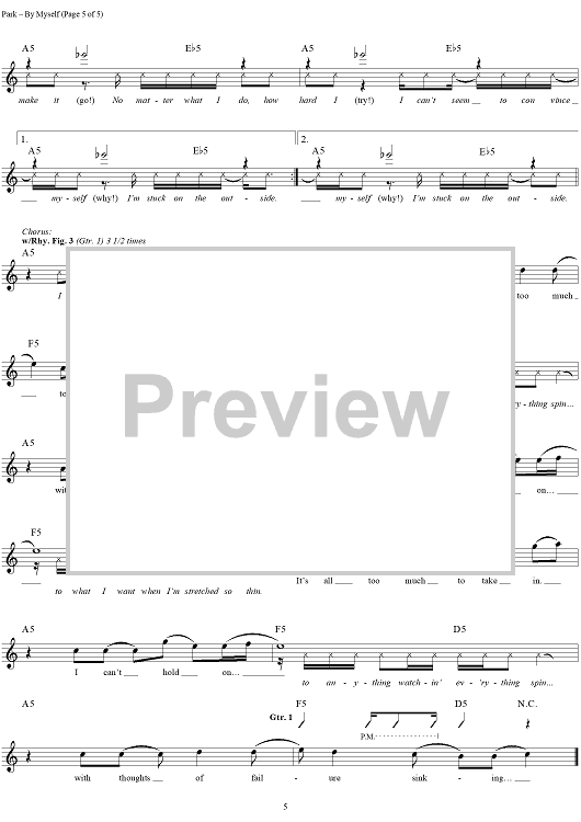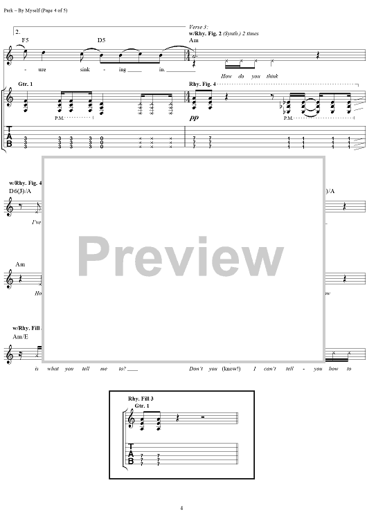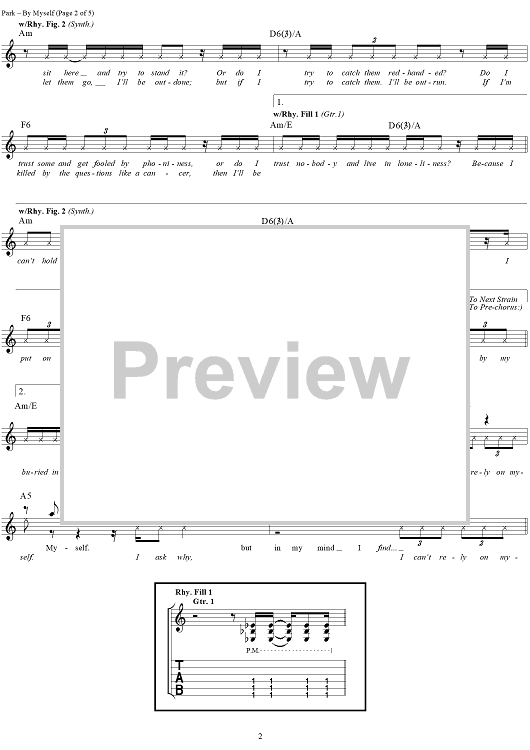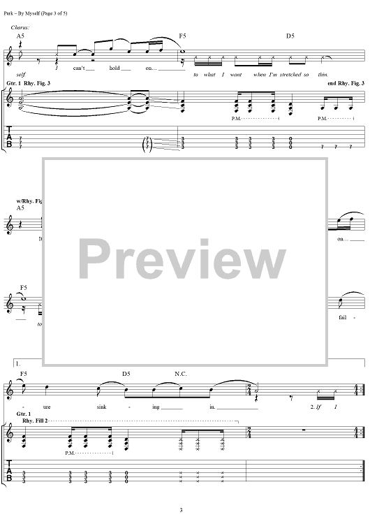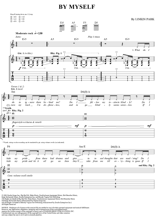 Digital Sheet Music for By Myself by Linkin Park scored for Guitar Tab/Vocal; id:285782