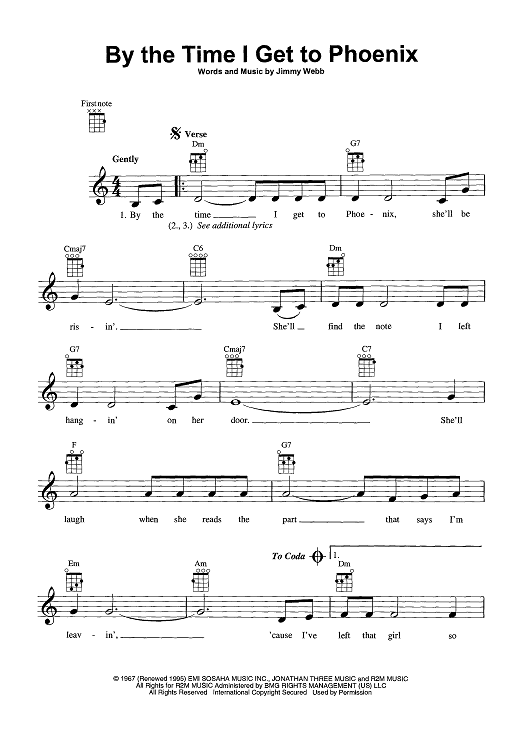 Digital Sheet Music for By the Time I Get to Phoenix by Glen Campbell, Jimmy Webb scored for Ukulele/Vocal; id:448957