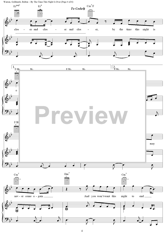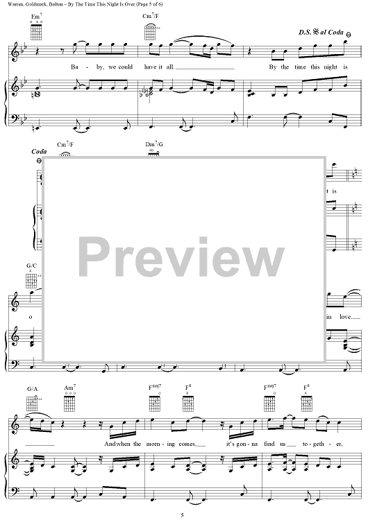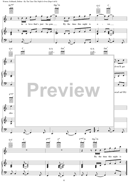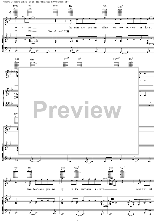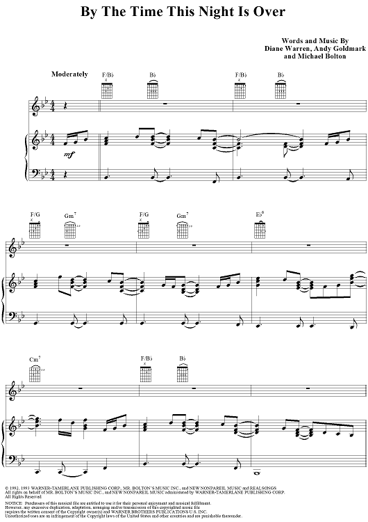 Digital Sheet Music for By The Time This Night Is Over by Diane Warren, Michael Bolton, Andy Goldmark, Peabo Bryson, Kenny G scored for Piano/Vocal/Chords; id:95946