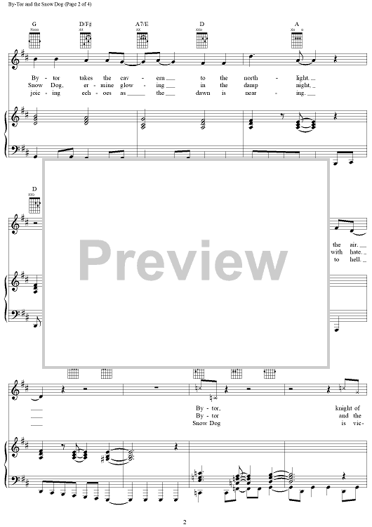 Digital Sheet Music for By-Tor and the Snow Dog by Rush, Geddy Lee, Alex Lifeson, Neil Peart scored for Piano/Vocal/Chords; id:241295