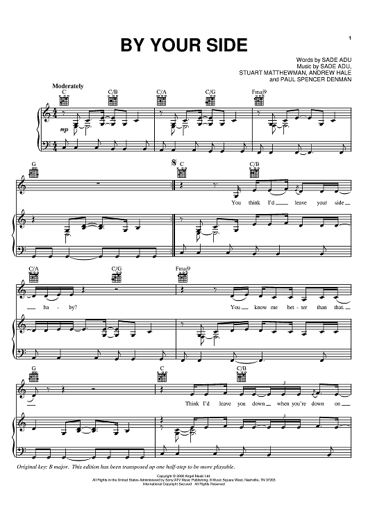 Digital Sheet Music for By Your Side by Sade Adu, Andrew Hale, Stuart Matthewman, Sade scored for Piano/Vocal/Chords; id:371253