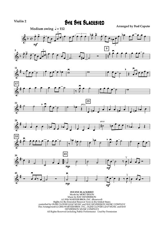 "Bye Bye Blackbird - Violin 2" Sheet Music by Ray Henderson