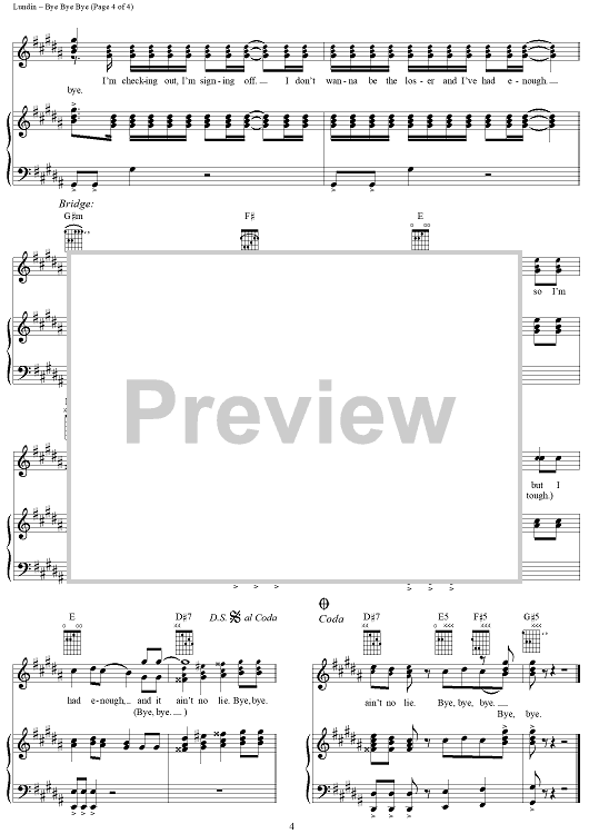 Digital Sheet Music for Bye Bye Bye by Andreas Carlsson, Kristian Lundin, Jake Carlsson, *Nsync scored for Piano/Vocal/Chords; id:202218