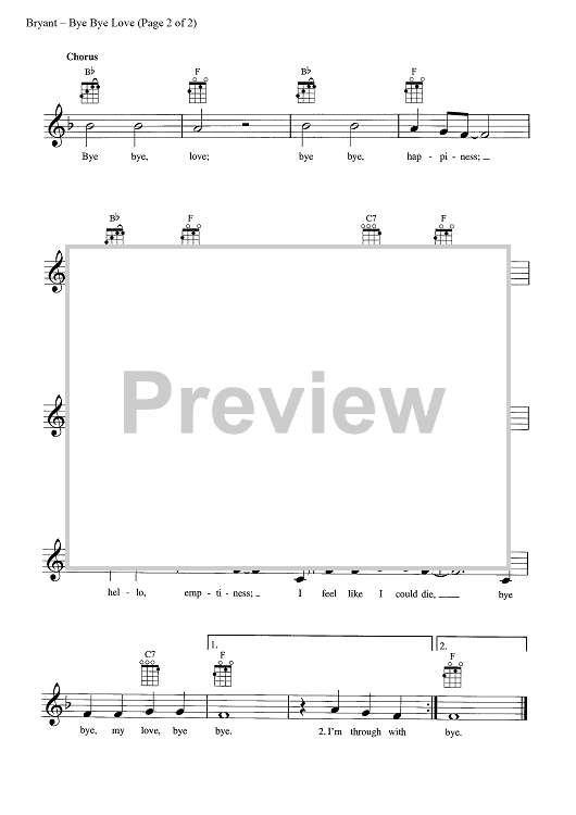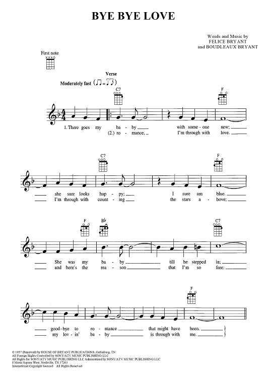 Digital Sheet Music for Bye Bye Love by Boudleaux Bryant, Felice Bryant, The Everly Brothers scored for Ukulele/Vocal; id:445608
