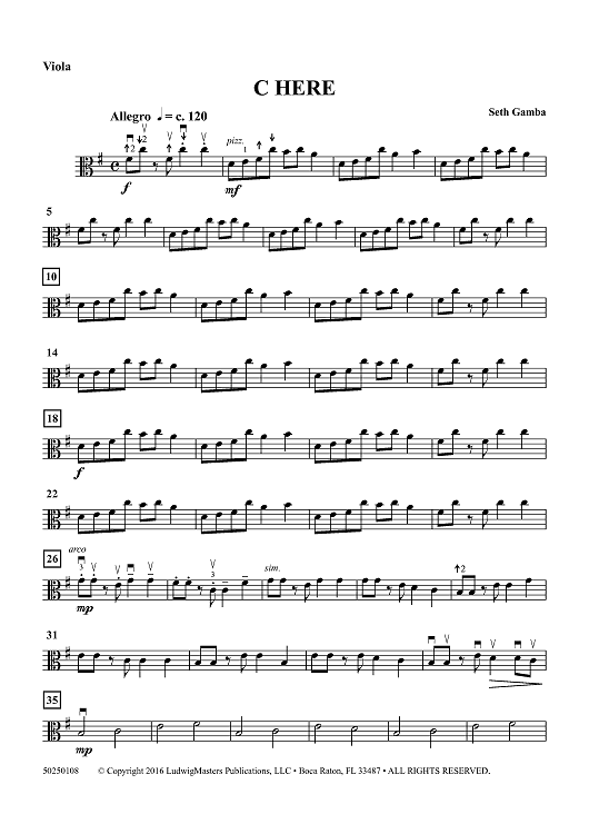 Digital Sheet Music for C Here - Viola by Seth Gamba scored for String Orchestra; id:462047