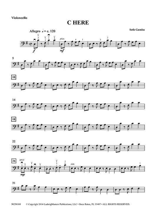 "C Here - Violoncello" Sheet Music by Seth Gamba