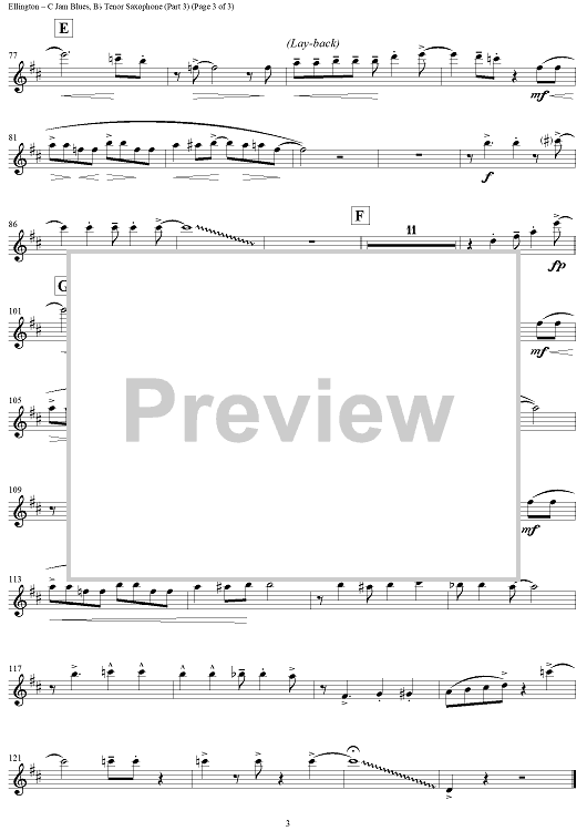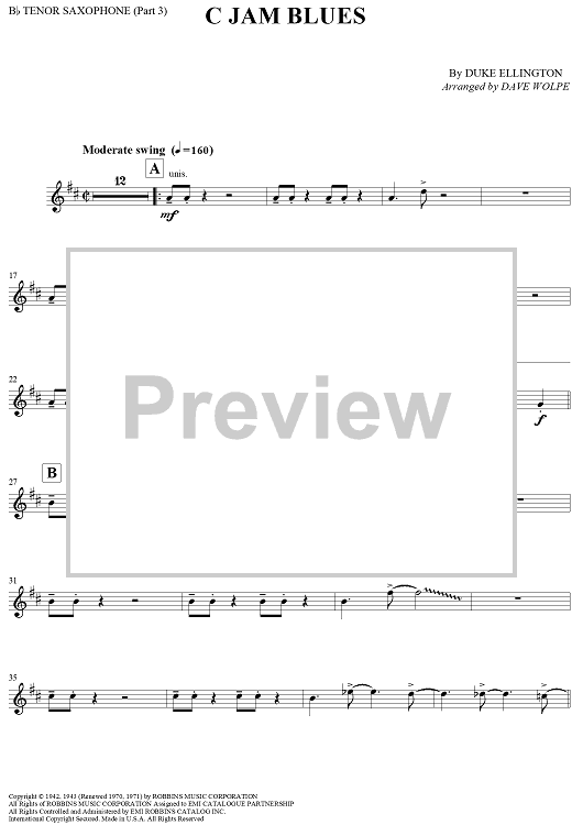 "C Jam Blues - Tenor Saxophone 1" Sheet Music by Duke Ellington