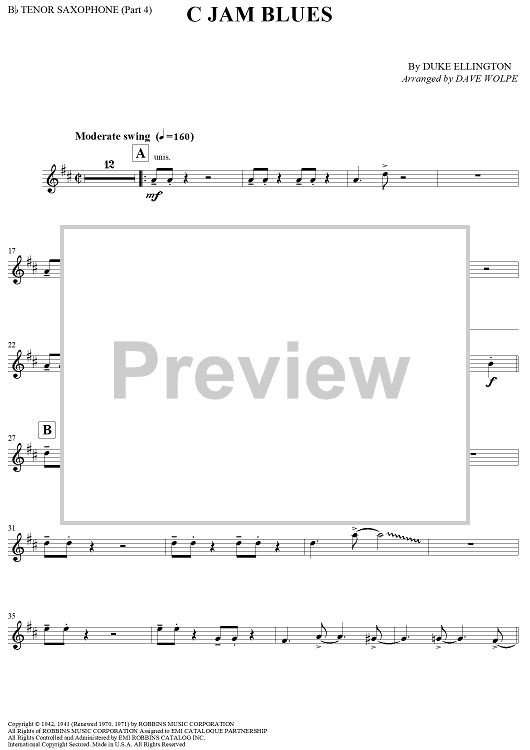 "C Jam Blues - Tenor Saxophone 2" Sheet Music by Duke Ellington