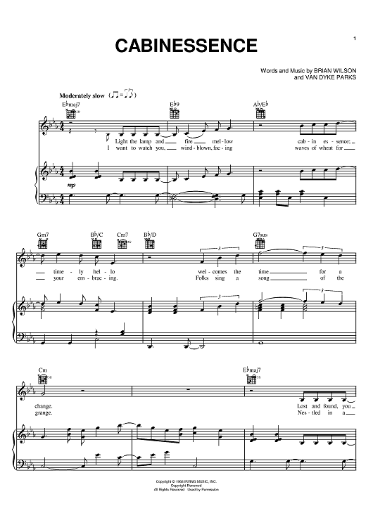 Digital Sheet Music for Cabinessence by Brian Wilson, The Beach Boys, Van Dyke Parks scored for Piano/Vocal/Chords; id:382243