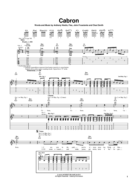 Digital Sheet Music for Cabron by Flea, John Frusciante, Anthony Kiedis, Red Hot Chili Peppers scored for Guitar Tab; id:370299