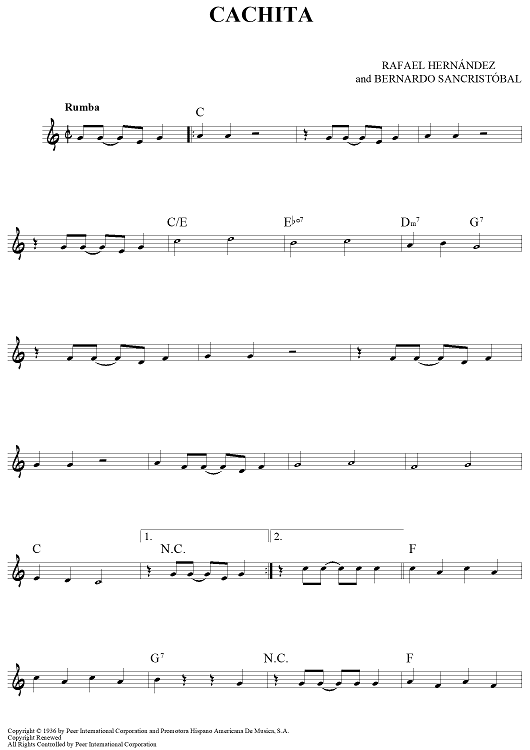 "Cachita" Sheet Music by Rafael Hernández