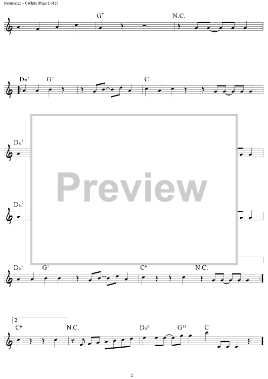 Digital Sheet Music for Cachita by Rafael Hernández, Bernardo C. Sancristobal scored for Lead Sheet; id:445177