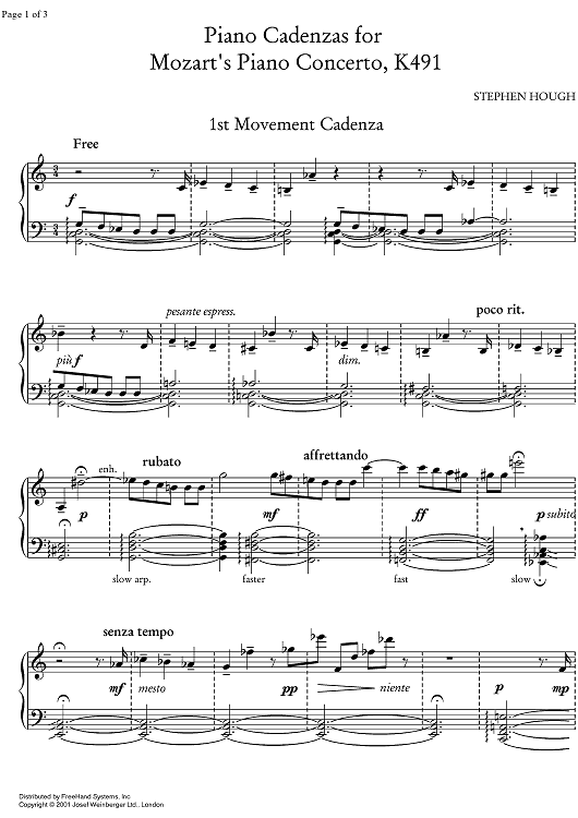 Digital Sheet Music for Cadenza Concerto No.24 c minor KV491 1st and 3rd movement - Piano by Wolfgang Amadeus Mozart, Stephen Hough scored for Piano Solo; id:332141