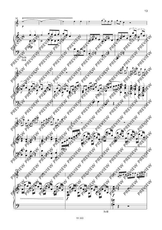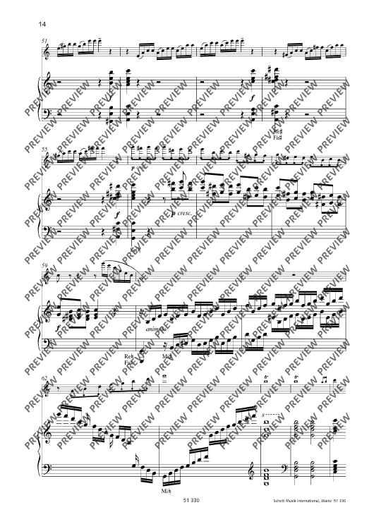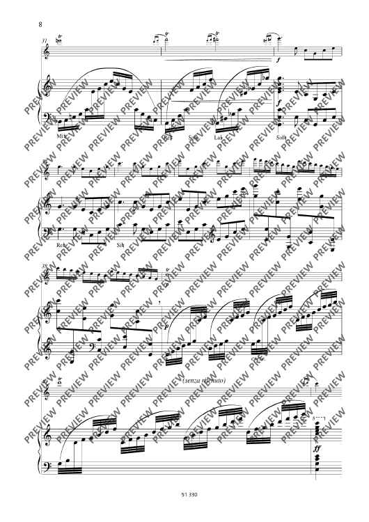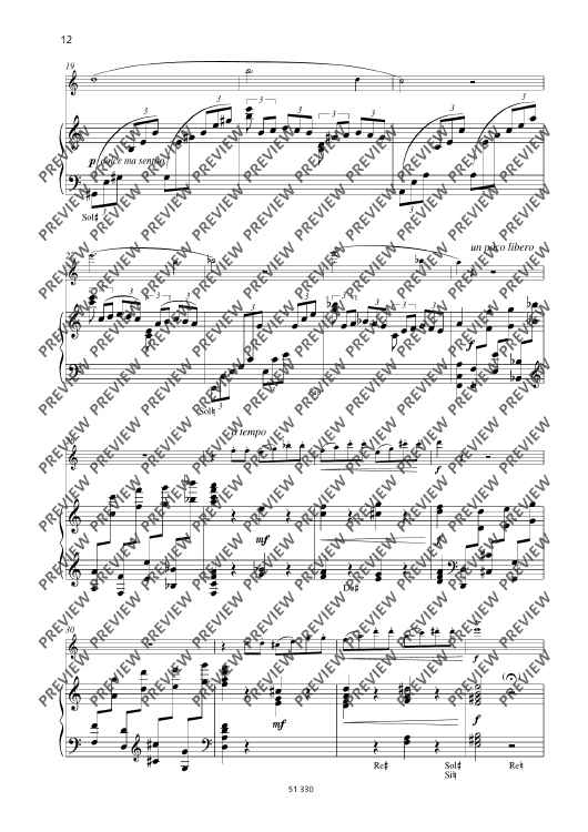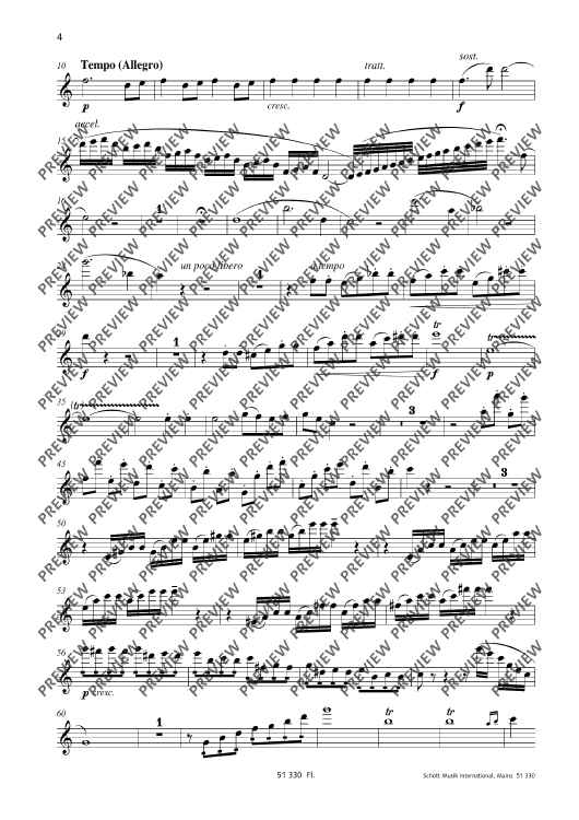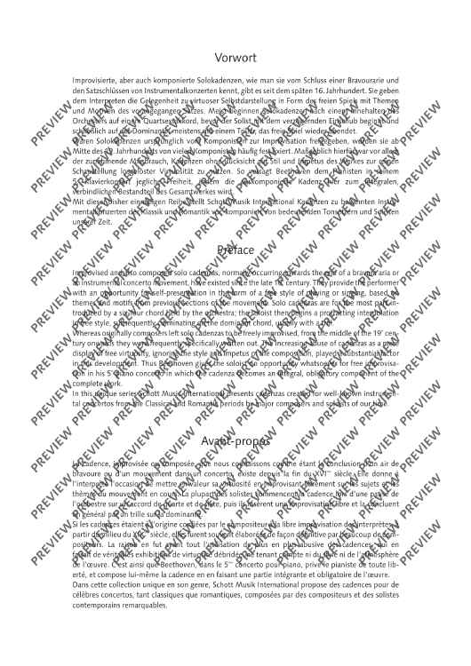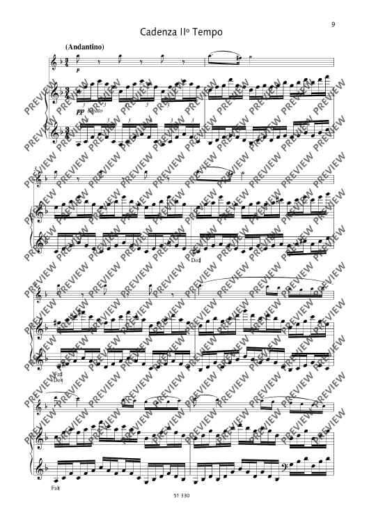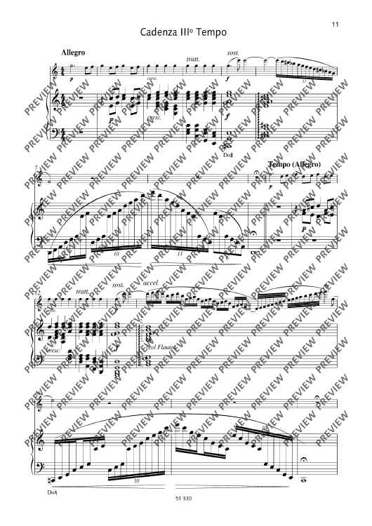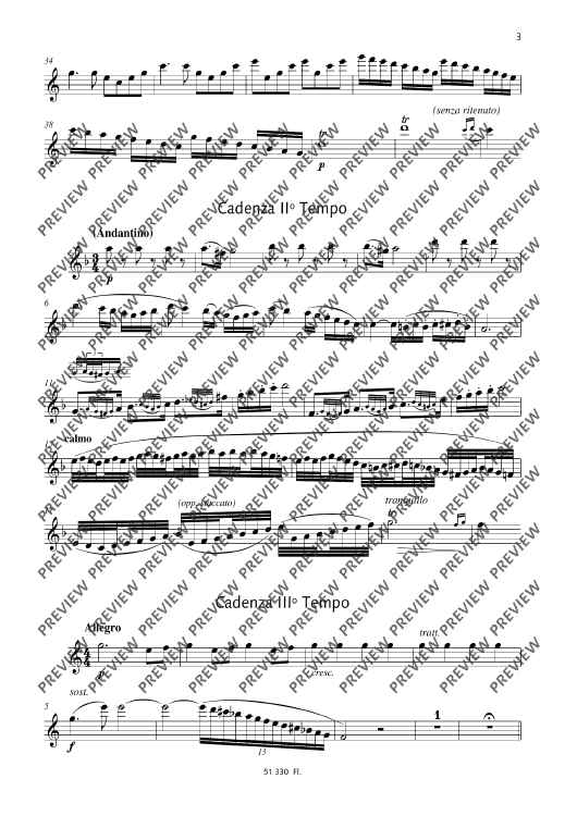 In the unparalleled series ‚Cadenza‘, Schott Musik International presents cadences of well-known instrumental concertos of classical and Romantic music, composed by major composers and soloists of our time. The cadences of Mozart‘s Concerto for flute, harp and orchestra in C major KV 299 were created by Nino Rota. It is not known when and for which occasion Rota wrote these cadences. But the two soloists, on the other hand, to whom he dedicated the cadences are quite well-known: the harpist, Clelia Gatti Aldronandi and the famous flutist Severino Gazzelloni. Rota‘s brilliant neoclassicism is perfect for the virtuoso dialogue between the two solo instruments on the themes of the concerto.