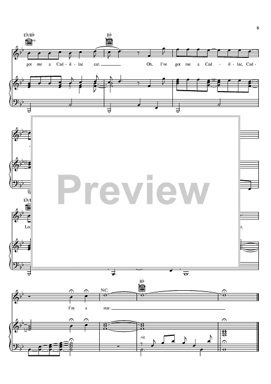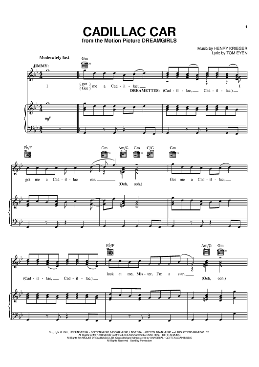 Digital Sheet Music for Cadillac Car by Henry Krieger, Tom Eyen scored for Piano/Vocal/Chords; id:395770