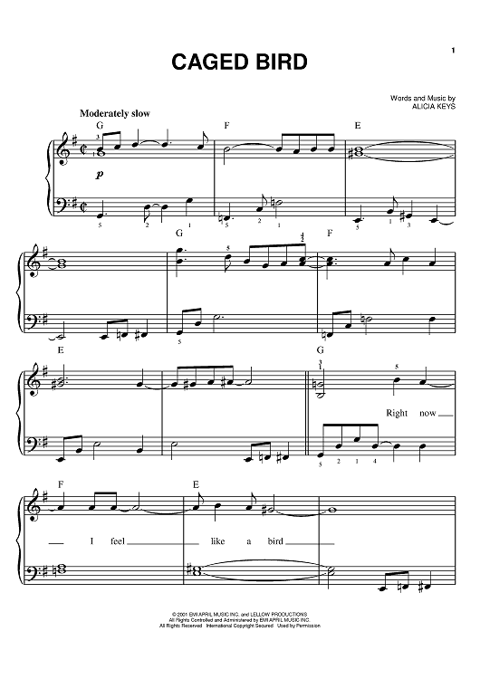 Digital Sheet Music for Caged Bird by Alicia Keys scored for Easy Piano; id:371285
