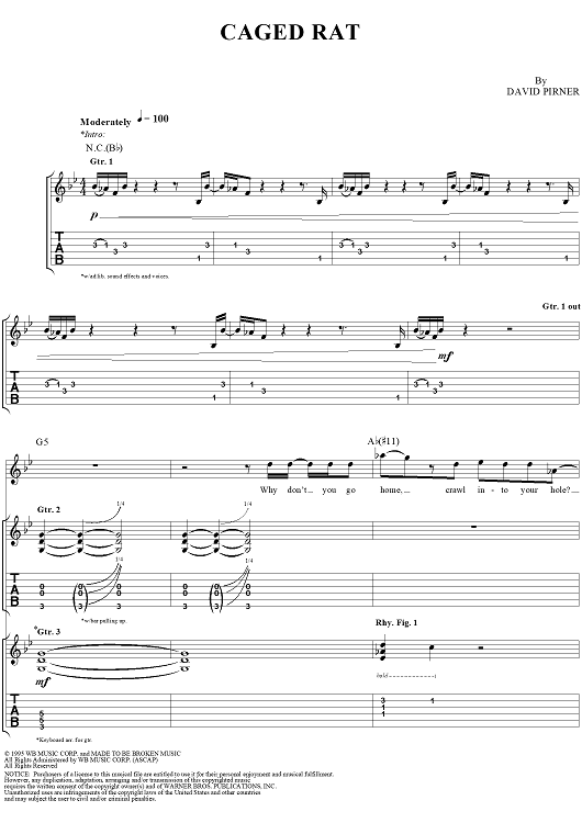 Digital Sheet Music for Caged Rat by David Pirner, Soul Asylum scored for Guitar Tab/Vocal; id:113581