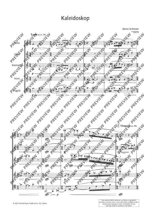 Digital Sheet Music for Caleidoscope - Score and Parts by Anno Schreier scored for Wind Quintet; id:496502