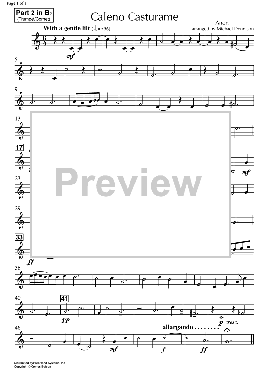 Digital Sheet Music for Caleno Casturame - B-flat Trumpet/Cornet by , Unknown Writer, Michael Dennison scored for Brass Ensemble; id:327436