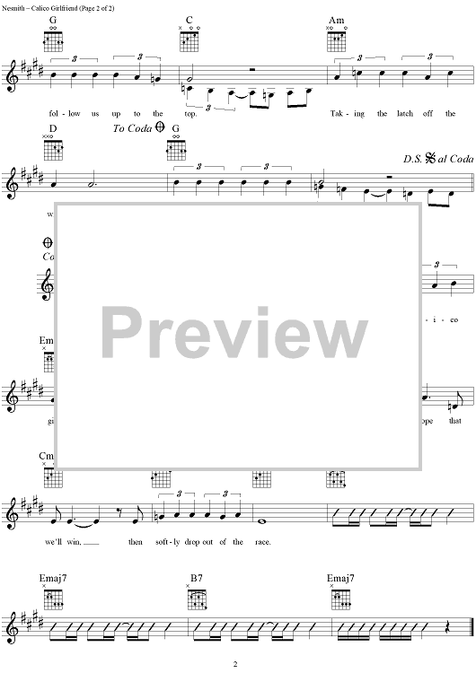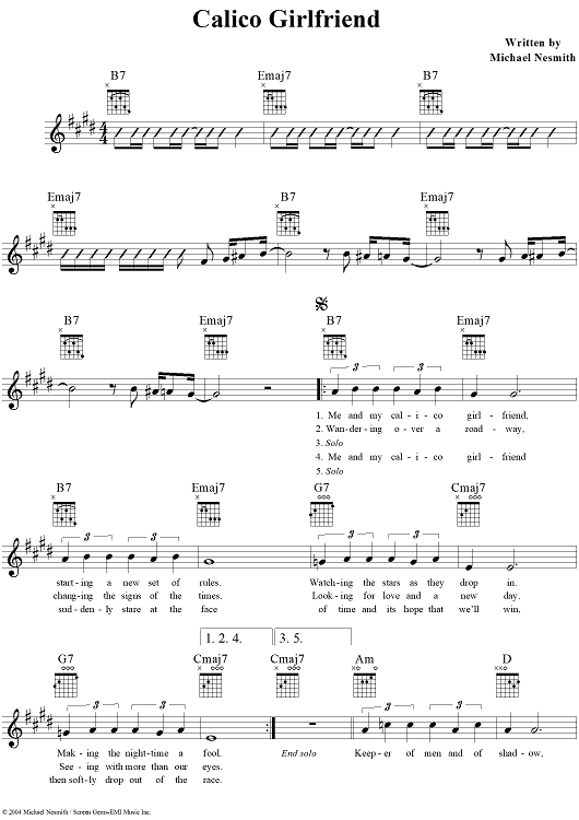 "Calico Girlfriend" Sheet Music by Michael Nesmith