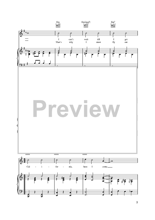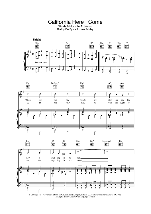 Digital Sheet Music for California Here I Come by Al Jolson, Joseph Meyer, Buddy DeSylva scored for Piano/Vocal/Chords; id:392771