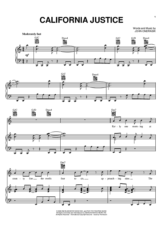 Digital Sheet Music for California Justice by Five for Fighting scored for Piano/Vocal/Chords; id:397139