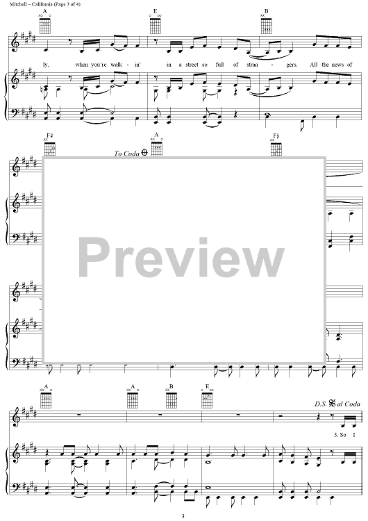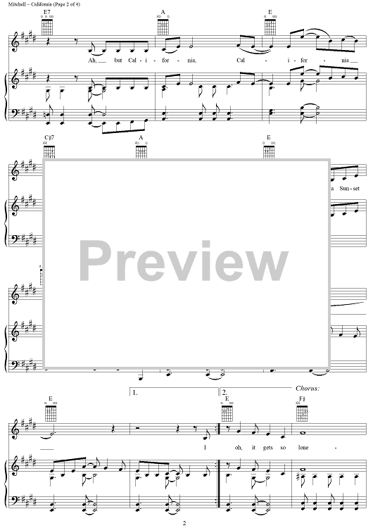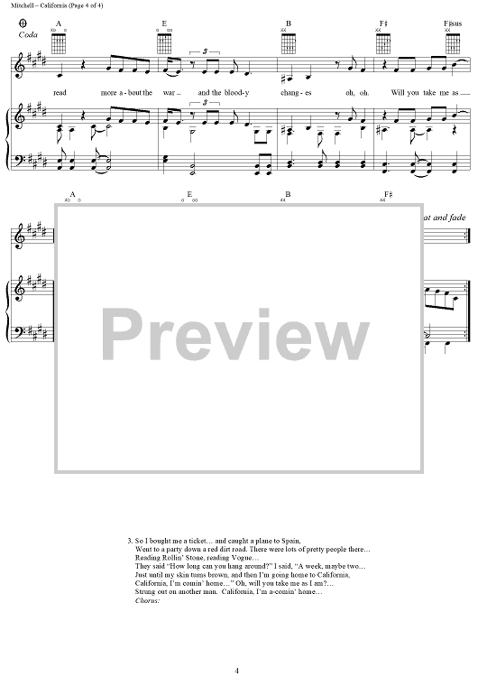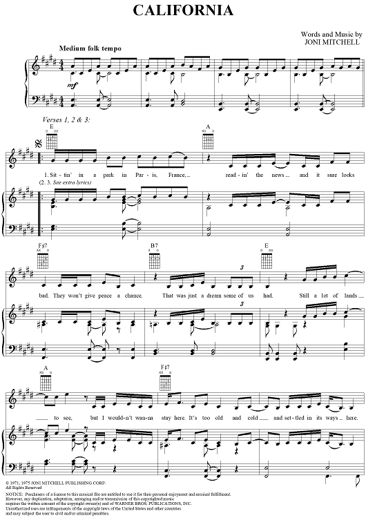 Digital Sheet Music for California by Joni Mitchell scored for Piano/Vocal/Chords; id:187703
