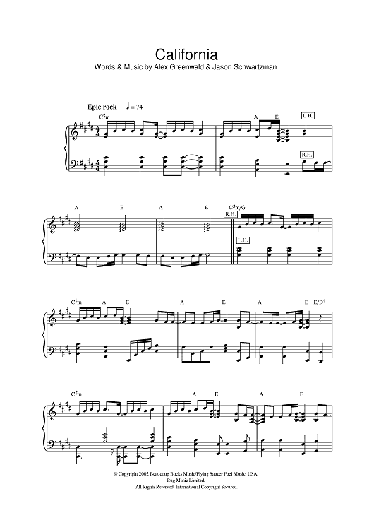 Digital Sheet Music for California (theme from The OC) by Jason Schwartzman, Alex Greenwald, Phantom Planet scored for Piano; id:384764