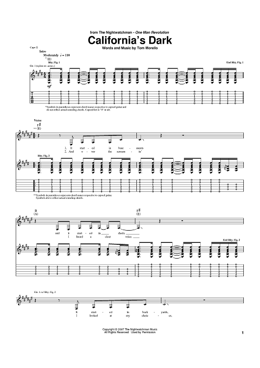 Digital Sheet Music for California's Dark by Tom Morello, The Nightwatchman scored for Guitar Tab; id:401117