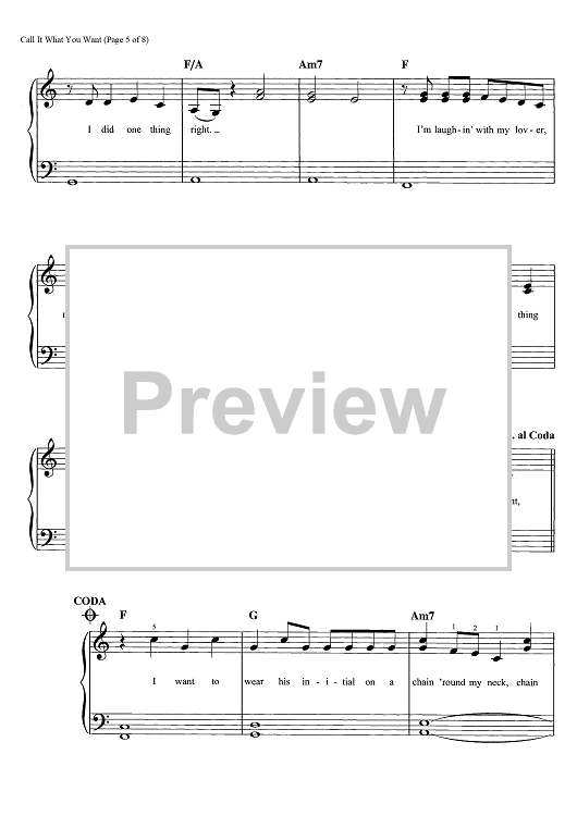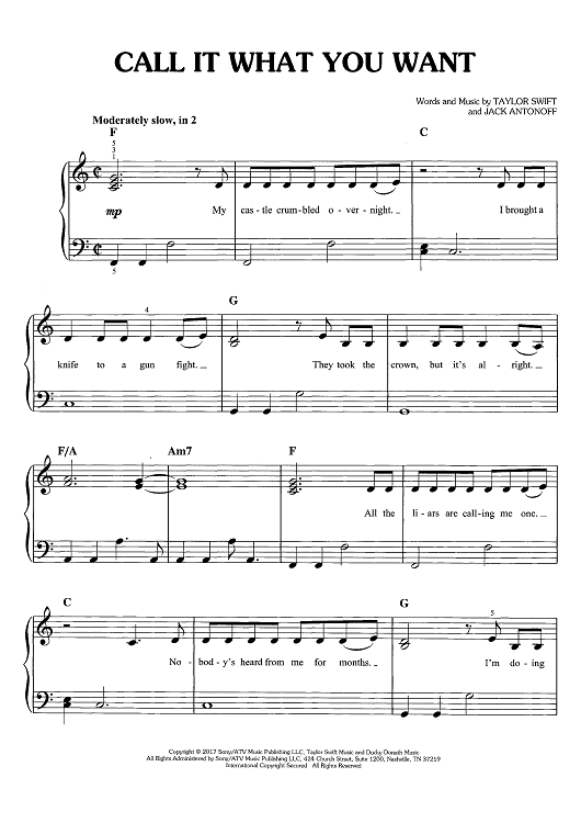 Digital Sheet Music for Call It What You Want by Taylor Swift, Jack Antonoff scored for Easy Piano/Vocal/Chords; id:466063