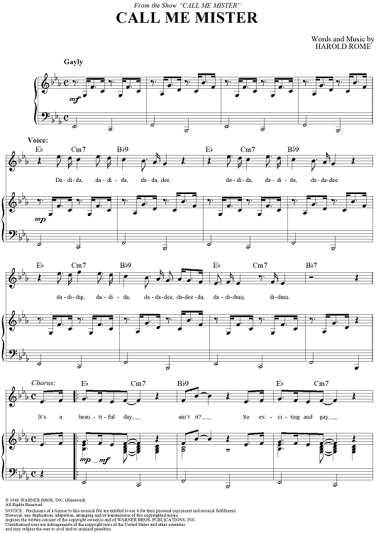 Digital Sheet Music for Call Me Mister by Harold Rome scored for Piano/Vocal/Chords; id:254570